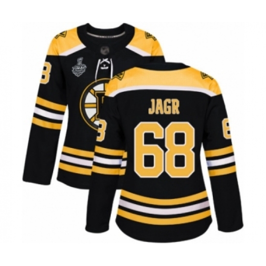 >Women's Boston Bruins #68 Jaromir Jagr Authentic Black Home 2019 Stanley Cup Final Bound Hockey Jersey