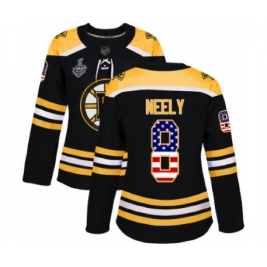 Women's Boston Bruins #8 Cam Neely Authentic Black USA Flag Fashion 2019 Stanley Cup Final Bound Hockey Jersey