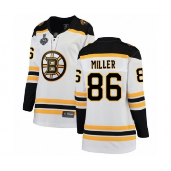 >Women's Boston Bruins #86 Kevan Miller Authentic White Away Fanatics Branded Breakaway 2019 Stanley Cup Final Bound Hockey Jersey