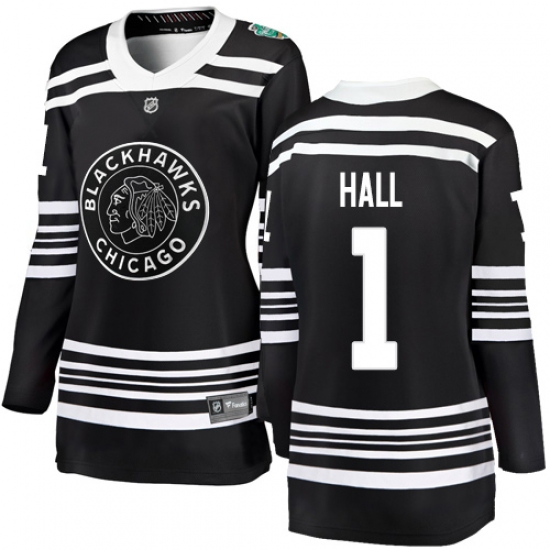 Women's Chicago Blackhawks #1 Glenn Hall Black 2019 Winter Classic Fanatics Branded Breakaway NHL Jersey
