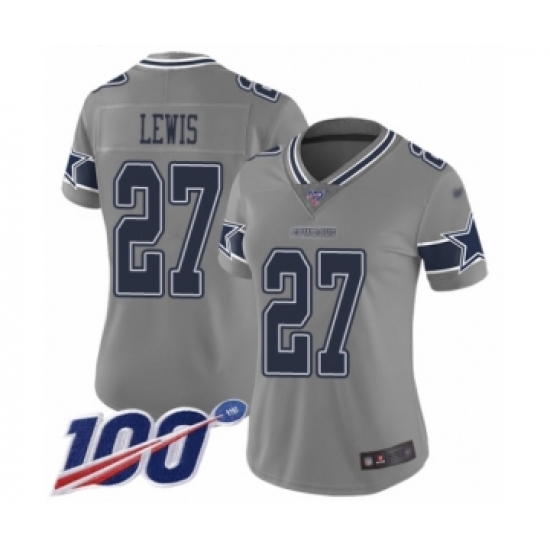 >Women's Dallas Cowboys #27 Jourdan Lewis Limited Gray Inverted Legend 100th Season Football Jersey