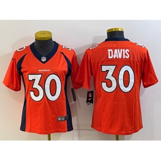 >Women's Denver Broncos #30 Terrell Davis Orange 2022 Vapor Untouchable Stitched NFL Nike Limited Jersey