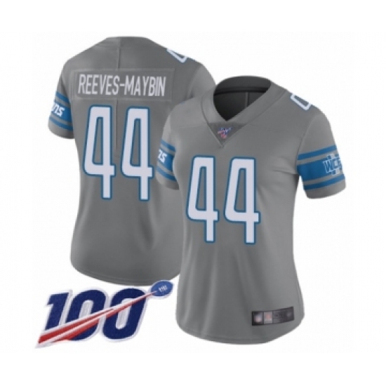 Women's Detroit Lions #44 Jalen Reeves-Maybin Limited Steel Rush Vapor Untouchable 100th Season Football Jersey