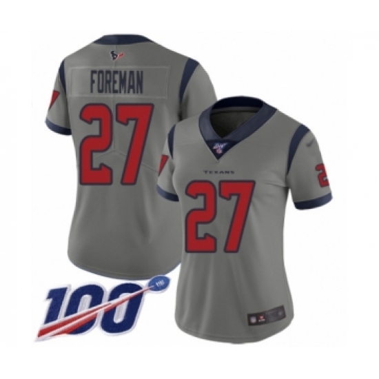 Women's Houston Texans #27 D'Onta Foreman Limited Gray Inverted Legend 100th Season Football Jersey