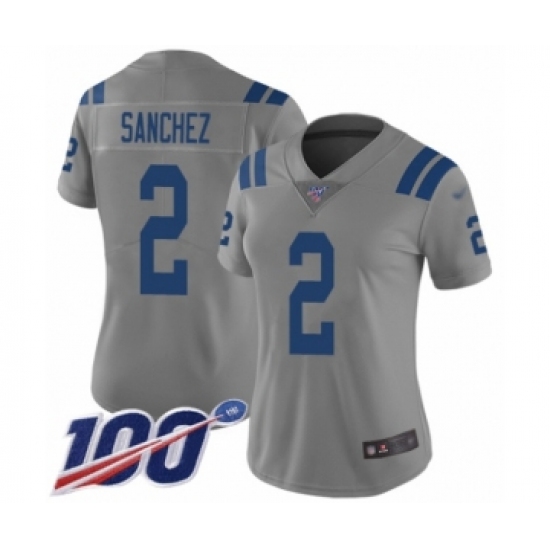 Women's Indianapolis Colts #2 Rigoberto Sanchez Limited Gray Inverted Legend 100th Season Football Jersey