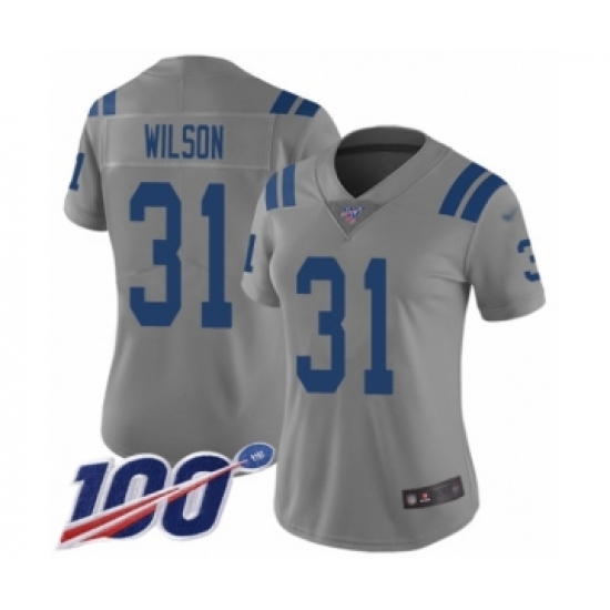>Women's Indianapolis Colts #31 Quincy Wilson Limited Gray Inverted Legend 100th Season Football Jersey