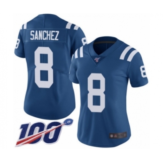 Women's Indianapolis Colts #8 Rigoberto Sanchez Royal Blue Team Color Vapor Untouchable Limited Player 100th Season Football Jersey
