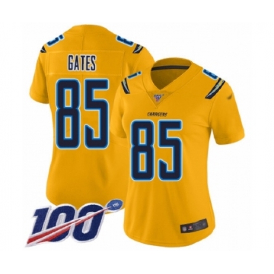 Women's Los Angeles Chargers #85 Antonio Gates Limited Gold Inverted Legend 100th Season Football Jersey