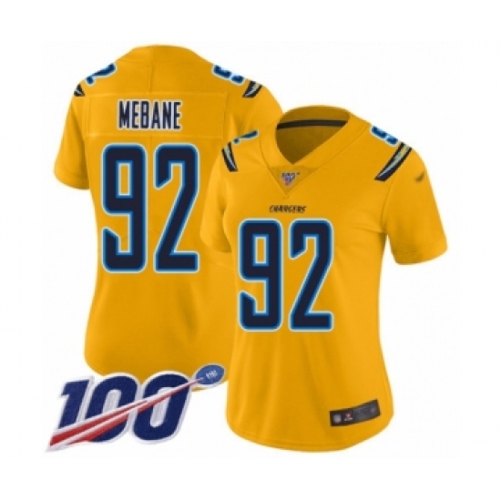 Women's Los Angeles Chargers #92 Brandon Mebane Limited Gold Inverted Legend 100th Season Football Jersey