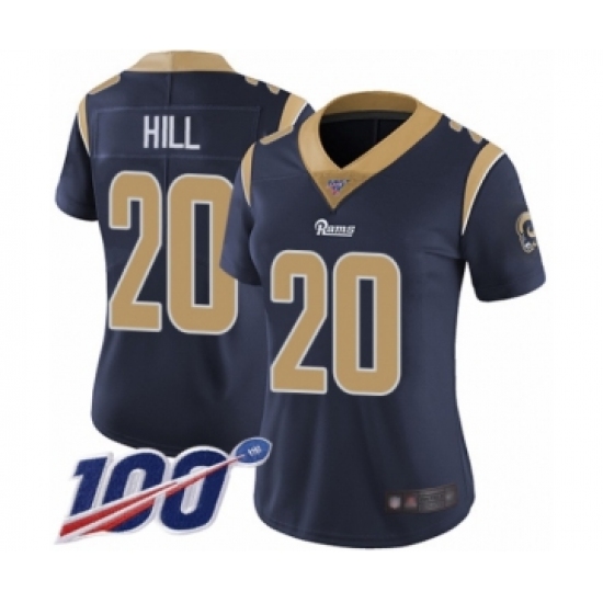 >Women's Los Angeles Rams #20 Troy Hill Navy Blue Team Color Vapor Untouchable Limited Player 100th Season Football Jersey