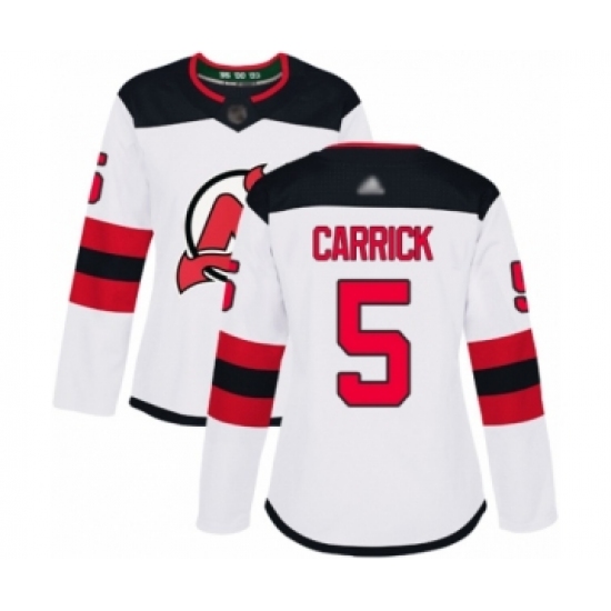 >Women's New Jersey Devils #5 Connor Carrick Authentic White Away Hockey Jersey
