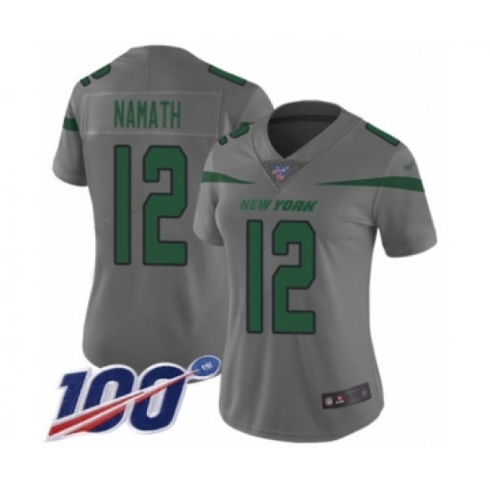 Women's New York Jets #12 Joe Namath Limited Gray Inverted Legend 100th Season Football Jersey