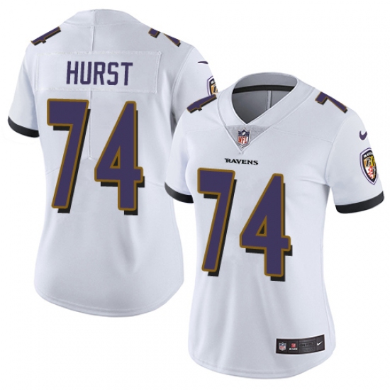 Home>NFL>Baltimore Ravens>James Hurst>Women's Nike Baltimore Ravens #74 James Hurst White Vapor Untouchable Limited Player NFL Jersey