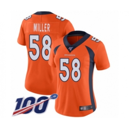 Women's Nike Denver Broncos #58 Von Miller Orange Team Color Vapor Untouchable Limited Player 100th Season NFL Jersey