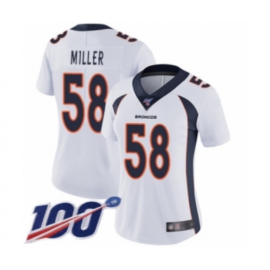 Women's Nike Denver Broncos #58 Von Miller White Vapor Untouchable Limited Player 100th Season NFL Jersey