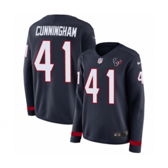 Women's Nike Houston Texans #41 Zach Cunningham Limited Navy Blue Therma Long Sleeve NFL Jersey
