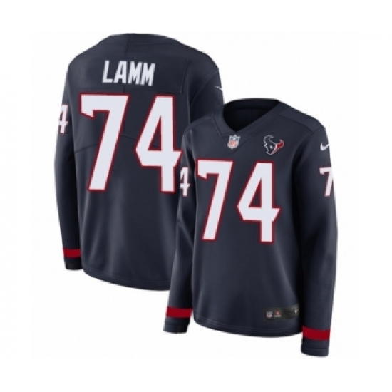 >Women's Nike Houston Texans #74 Kendall Lamm Limited Navy Blue Therma Long Sleeve NFL Jersey