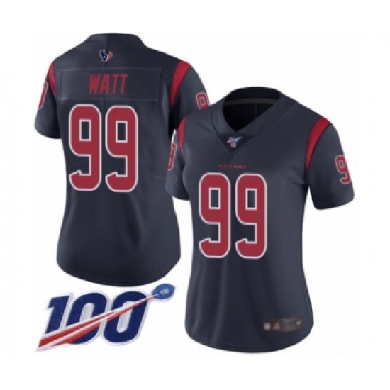 >Women's Nike Houston Texans #99 J.J. Watt Limited Navy Blue Rush Vapor Untouchable 100th Season NFL Jersey
