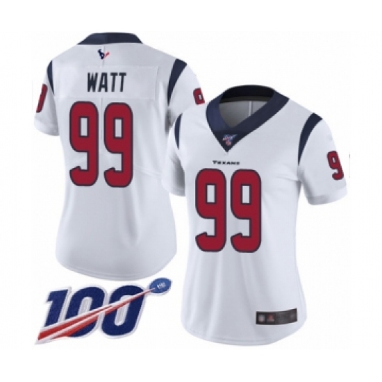 >Women's Nike Houston Texans #99 J.J. Watt White Vapor Untouchable Limited Player 100th Season NFL Jersey