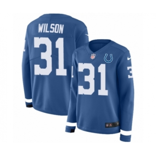 >Women's Nike Indianapolis Colts #31 Quincy Wilson Limited Blue Therma Long Sleeve NFL Jersey
