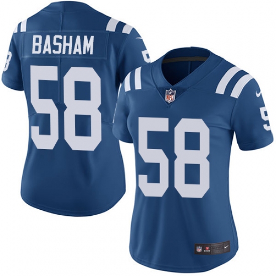 Women's Nike Indianapolis Colts #58 Tarell Basham Royal Blue Team Color Vapor Untouchable Limited Player NFL Jersey