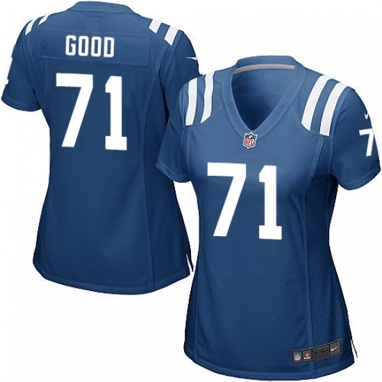 Home>NFL>Indianapolis Colts>Denzelle Good>Women's Nike Indianapolis Colts #71 Denzelle Good Game Royal Blue Team Color NFL Jersey
