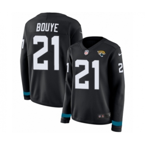 >Women's Nike Jacksonville Jaguars #21 A.J. Bouye Limited Black Therma Long Sleeve NFL Jersey