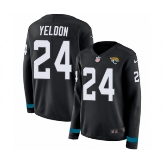 >Women's Nike Jacksonville Jaguars #24 T.J. Yeldon Limited Black Therma Long Sleeve NFL Jersey