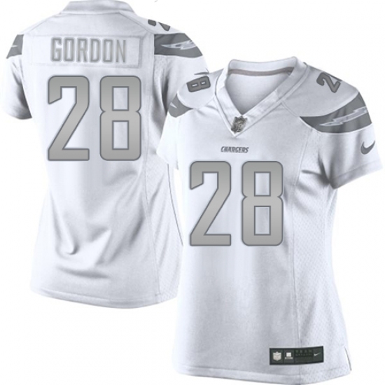 Home>NFL>Los Angeles Chargers>Melvin Gordon>Women's Nike Los Angeles Chargers #28 Melvin Gordon Limited White Platinum NFL Jersey
