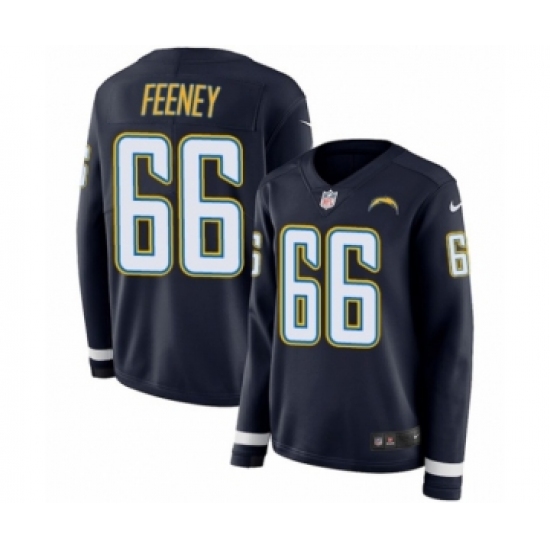 >Women's Nike Los Angeles Chargers #66 Dan Feeney Limited Navy Blue Therma Long Sleeve NFL Jersey