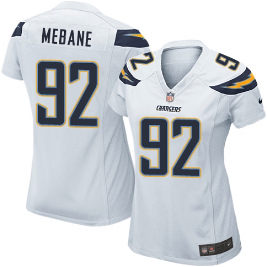 Home>NFL>Los Angeles Chargers>Brandon Mebane>Women's Nike Los Angeles Chargers #92 Brandon Mebane Game White NFL Jersey