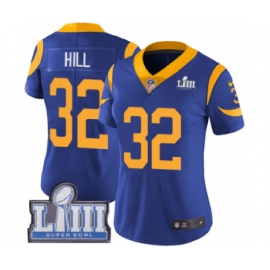 >Women's Nike Los Angeles Rams #32 Troy Hill Royal Blue Alternate Vapor Untouchable Limited Player Super Bowl LIII Bound NFL Jersey