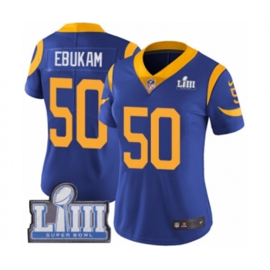 >Women's Nike Los Angeles Rams #50 Samson Ebukam Royal Blue Alternate Vapor Untouchable Limited Player Super Bowl LIII Bound NFL Jersey