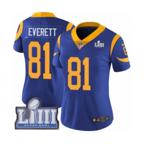 Women's Nike Los Angeles Rams #81 Gerald Everett Royal Blue Alternate Vapor Untouchable Limited Player Super Bowl LIII Bound NFL Jersey