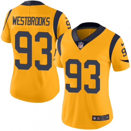 Home>NFL>Los Angeles Rams>Ethan Westbrooks>Women's Nike Los Angeles Rams #93 Ethan Westbrooks Limited Gold Rush Vapor Untouchable NFL Jersey