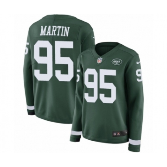 >Women's Nike New York Jets #95 Josh Martin Limited Green Therma Long Sleeve NFL Jersey