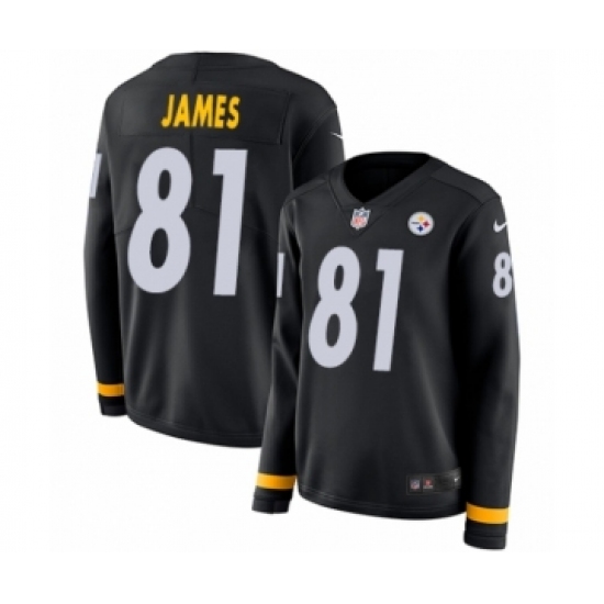 >Women's Nike Pittsburgh Steelers #81 Jesse James Limited Black Therma Long Sleeve NFL Jersey