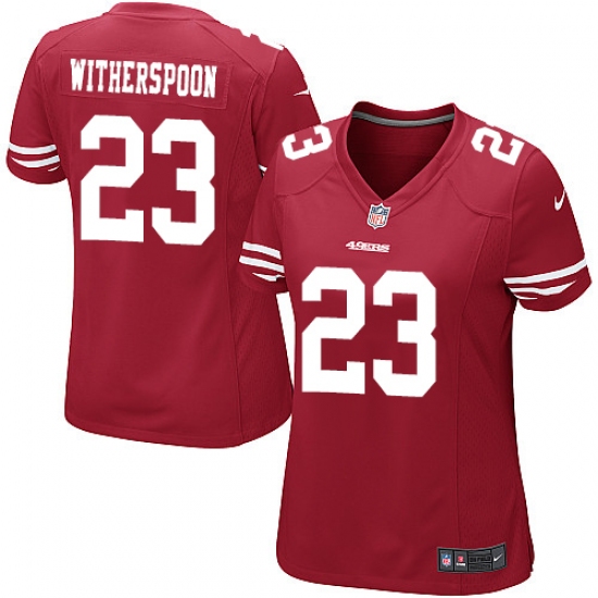 Home>NFL>San Francisco 49ers>Ahkello Witherspoon>Women's Nike San Francisco 49ers #23 Ahkello Witherspoon Game Red Team Color NFL Jersey