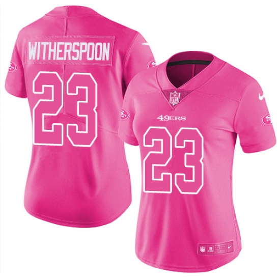 Home>NFL>San Francisco 49ers>Ahkello Witherspoon>Women's Nike San Francisco 49ers #23 Ahkello Witherspoon Limited Pink Rush Fashion NFL Jersey