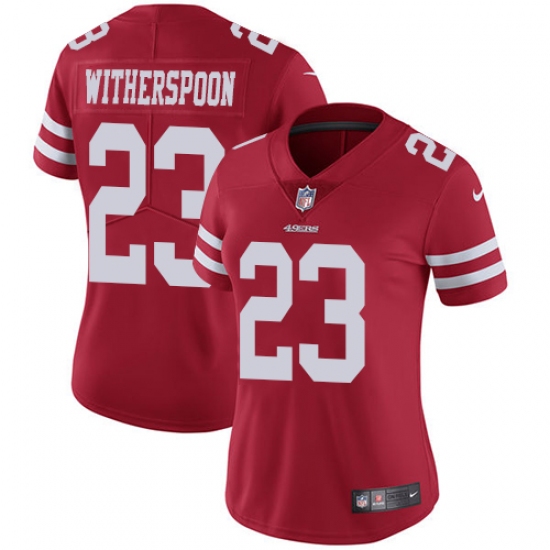Home>NFL>San Francisco 49ers>Ahkello Witherspoon>Women's Nike San Francisco 49ers #23 Ahkello Witherspoon Red Team Color Vapor Untouchable Elite Player NFL Jersey