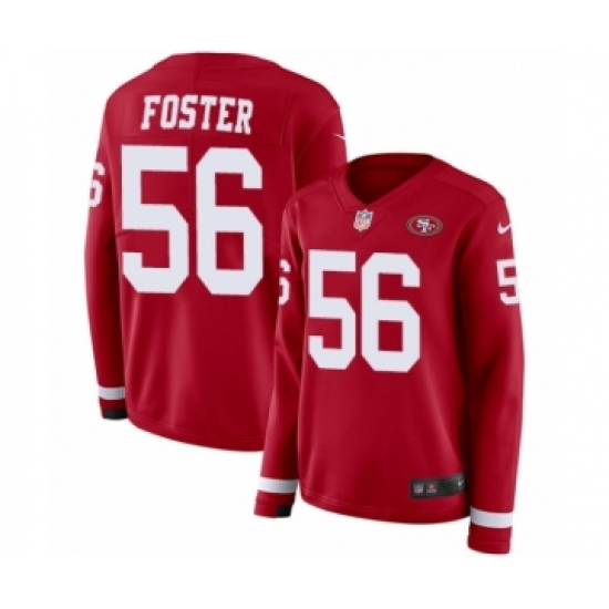 >Women's Nike San Francisco 49ers #56 Reuben Foster Limited Red Therma Long Sleeve NFL Jersey