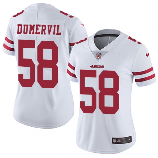 Home>NFL>San Francisco 49ers>Elvis Dumervil>Women's Nike San Francisco 49ers #58 Elvis Dumervil White Vapor Untouchable Limited Player NFL Jersey