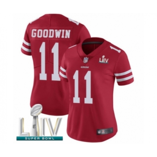 Women's San Francisco 49ers #11 Marquise Goodwin Red Team Color Vapor Untouchable Limited Player Super Bowl LIV Bound Football Jersey
