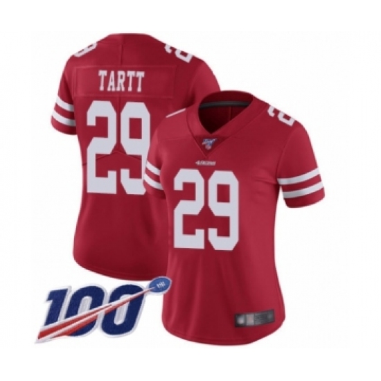 Women's San Francisco 49ers #29 Jaquiski Tartt Red Team Color Vapor Untouchable Limited Player 100th Season Football Jersey