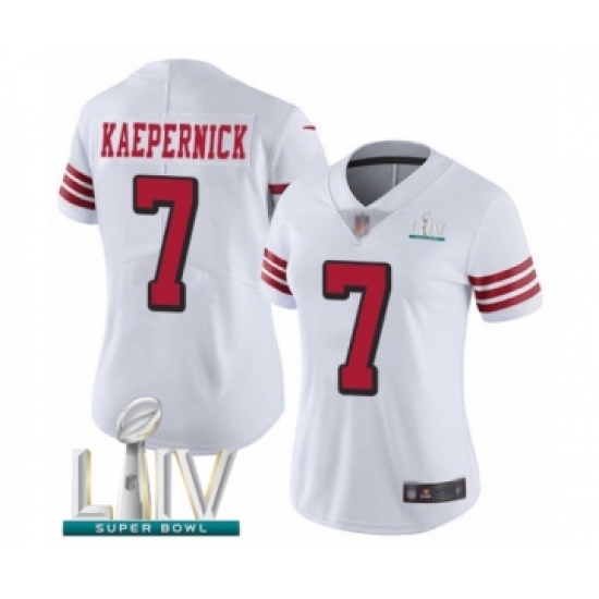 >Women's San Francisco 49ers #7 Colin Kaepernick Limited White Rush Vapor Untouchable Super Bowl LIV Bound Football Jersey