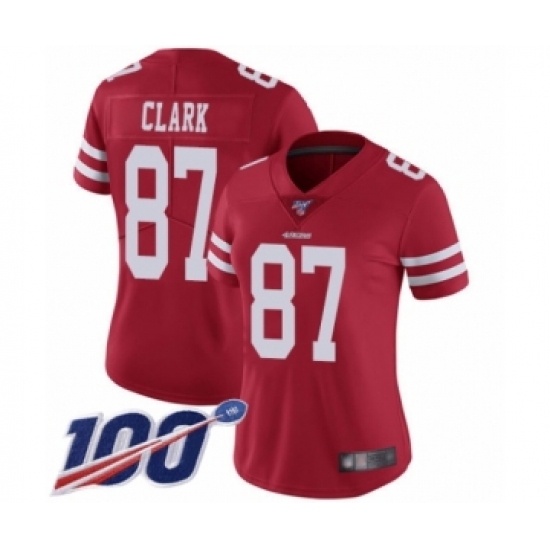 >Women's San Francisco 49ers #87 Dwight Clark Red Team Color Vapor Untouchable Limited Player 100th Season Football Jersey