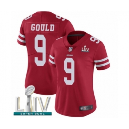 >Women's San Francisco 49ers #9 Robbie Gould Red Team Color Vapor Untouchable Limited Player Super Bowl LIV Bound Football Jersey