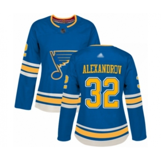 Women's St. Louis Blues #32 Nikita Alexandrov Authentic Navy Blue Alternate Hockey Jersey