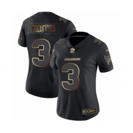 >Women's Tampa Bay Buccaneers #3 Jameis Winston Black Gold Vapor Untouchable Limited Football Jersey