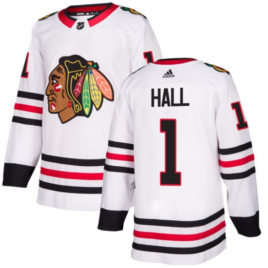 Home>NHL>Chicago Blackhawks>Glenn Hall>Youth Adidas Chicago Blackhawks #1 Glenn Hall Authentic White Away NHL Jersey